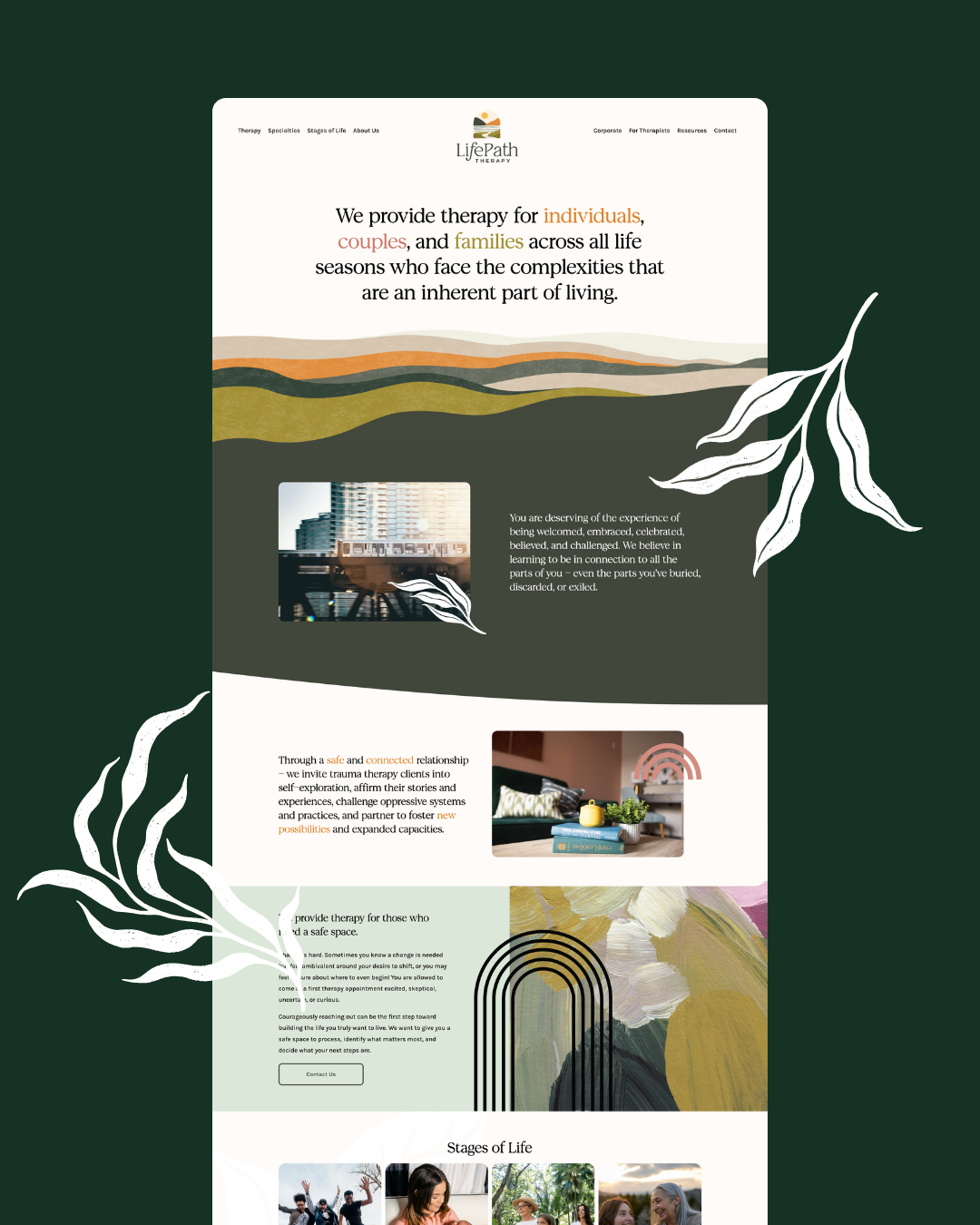 We have a “starting at” price because extra pages, team bios, and more content means work work. This way, we serve all service-based businesses, whether that’s a solo practice or large group therapy practrice.