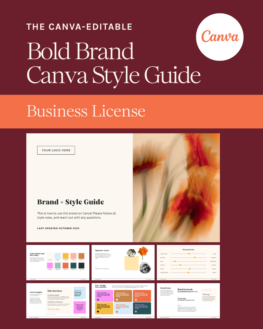 FREEBIES + SHOPDesign Resources The Bold Canva Brand Guide: A Canva Editable Identity Guide [BUSINESS LICENSE] $99.00 The Bold Canva Brand Guide: A Canva Editable Identity Guide [SINGLE USE] $37.00 The Dream DIY SEO Audit for Squarespace $95.00